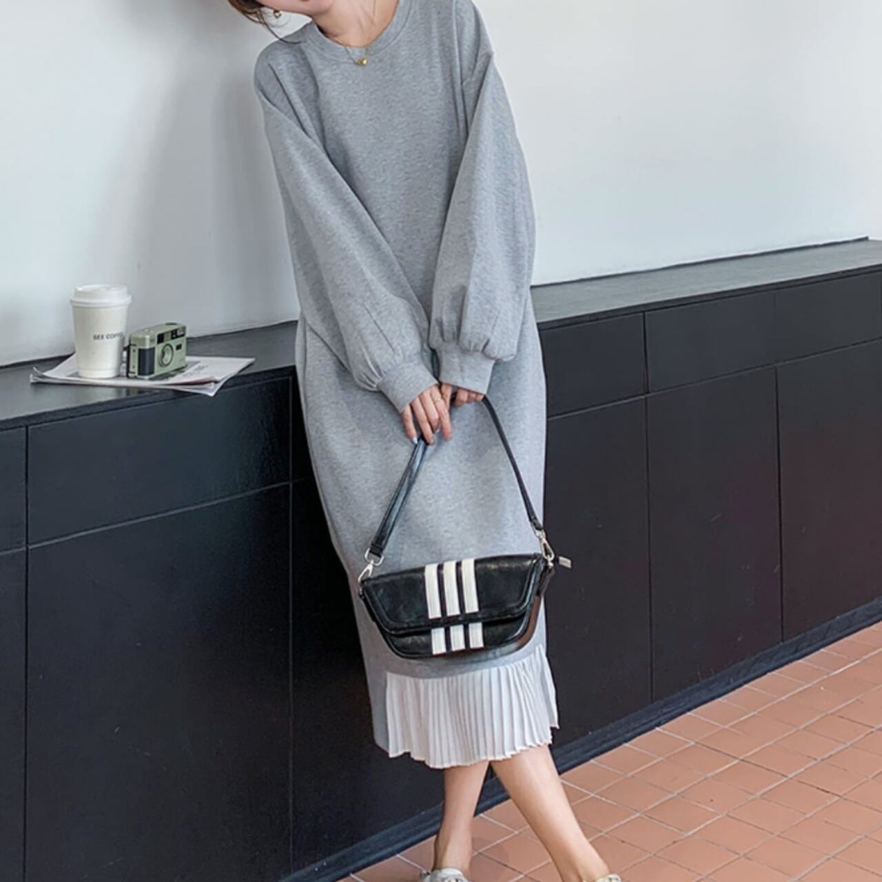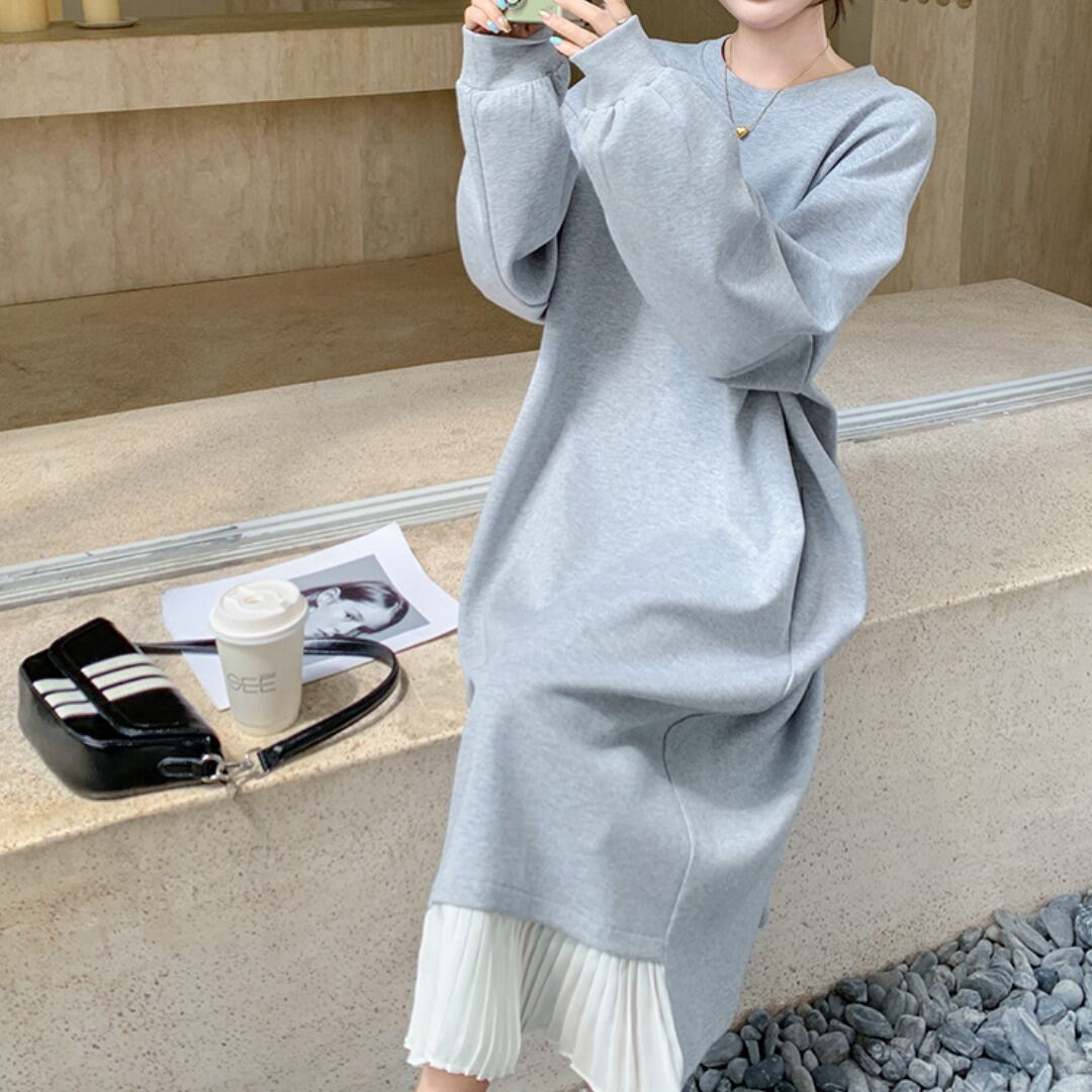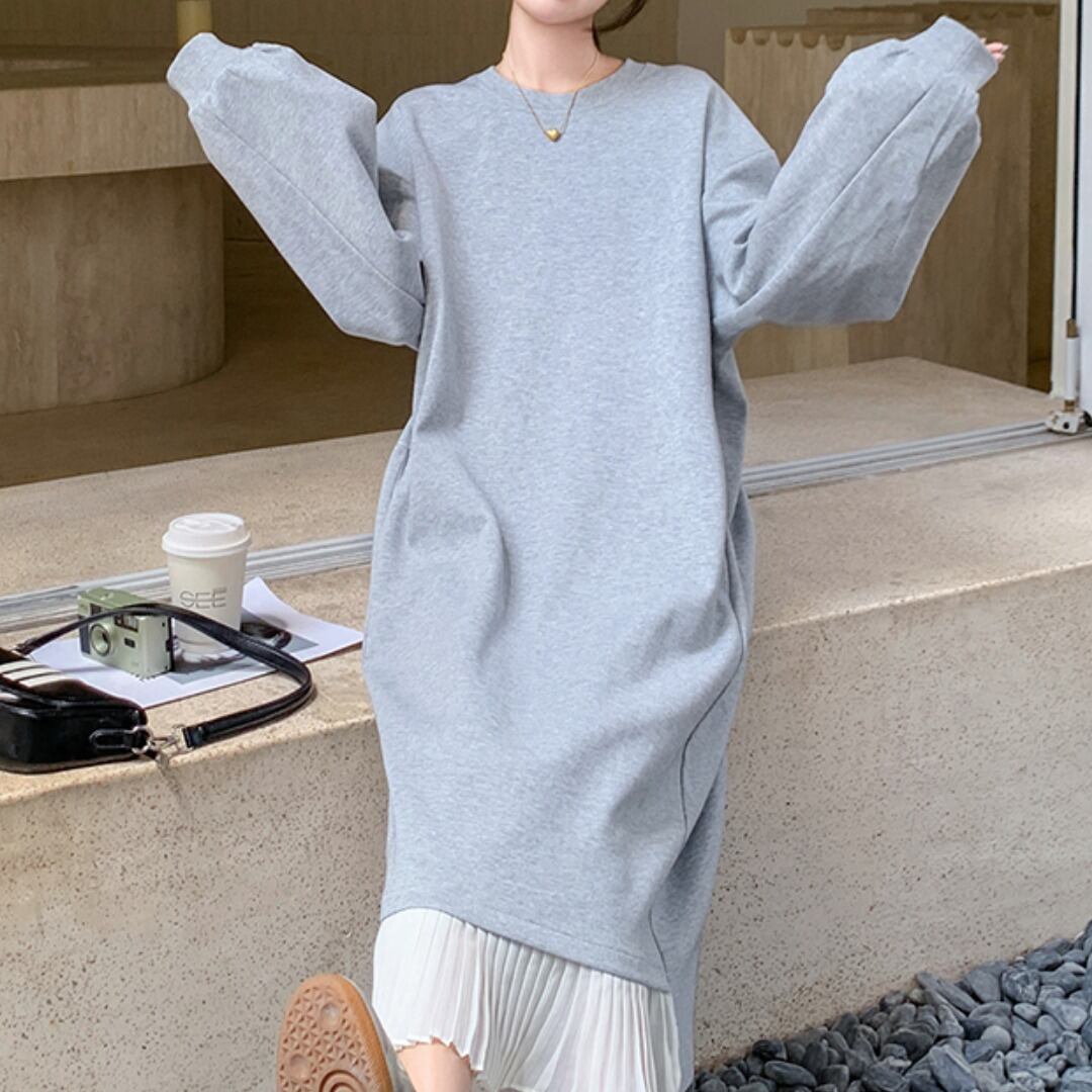 ヘムプリーツスウェットワンピース A0272