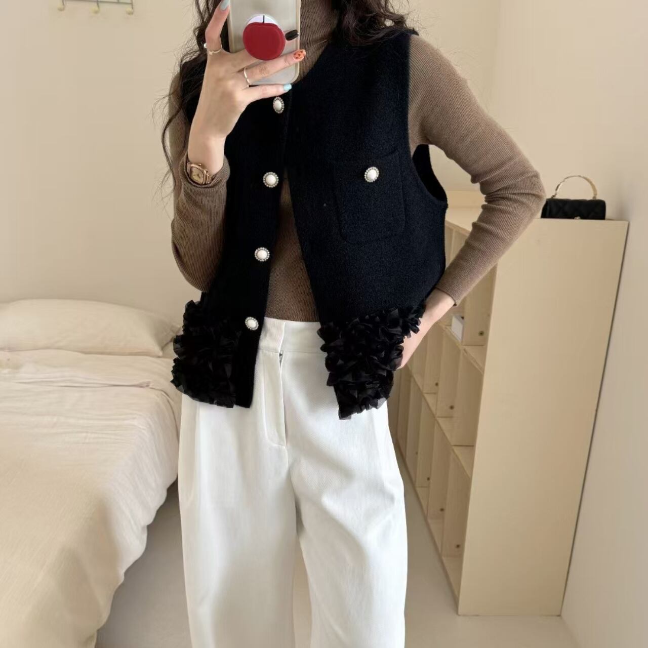 パールボタンフリルベスト A0311