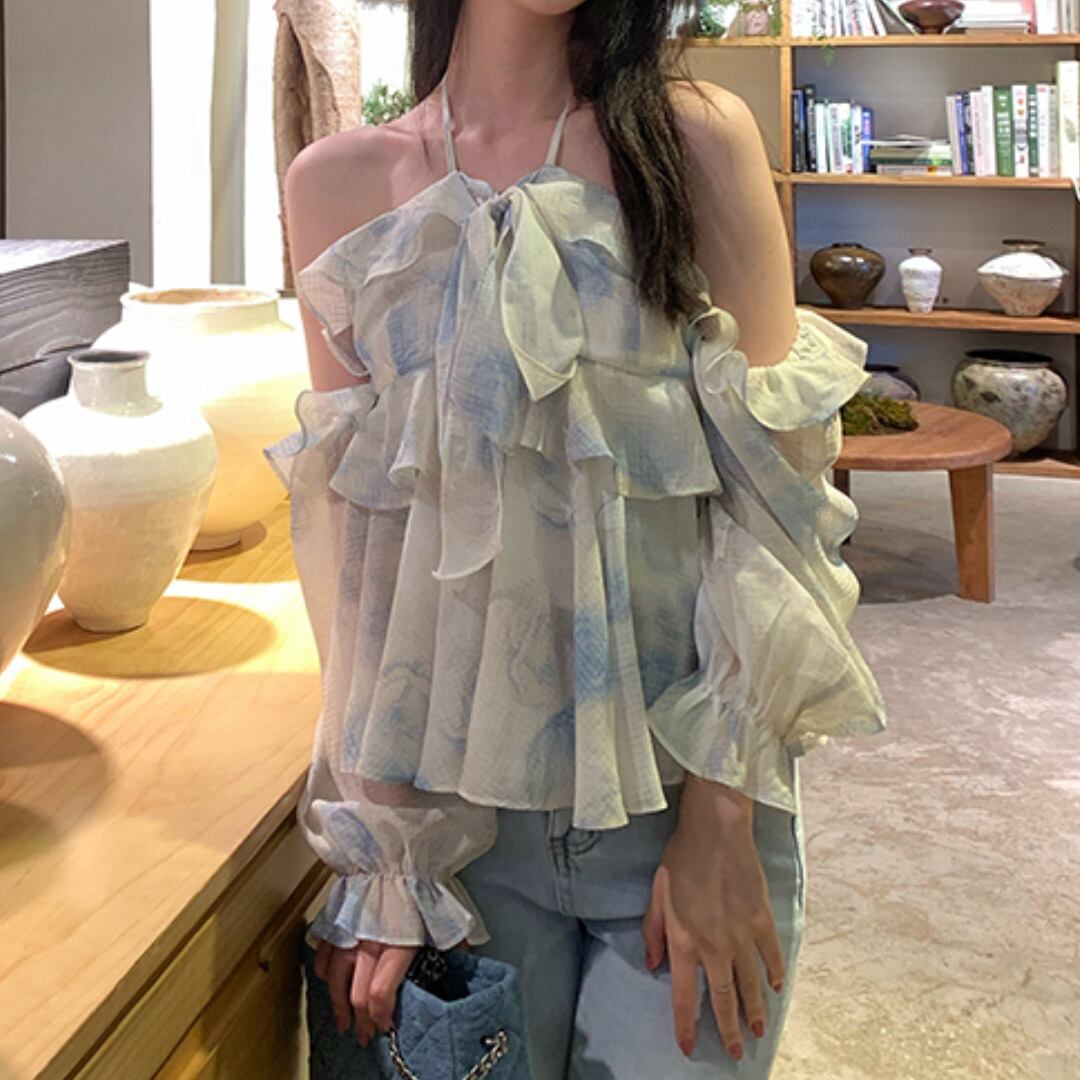 肩出しデザインが女性らしい魅力を引き立てるブラウス。フリルスリーブが華やかさを添え、繊細なデザインが洗練された印象を与えます。ロングスカートと合わせて優雅なスタイルに、デニムと合わせてカジュアルなスタイルにも。様々な着こなしが楽しめる、着回し力の高いアイテムです。デイリーユースから特別な日まで、幅広いシーンで活躍します。