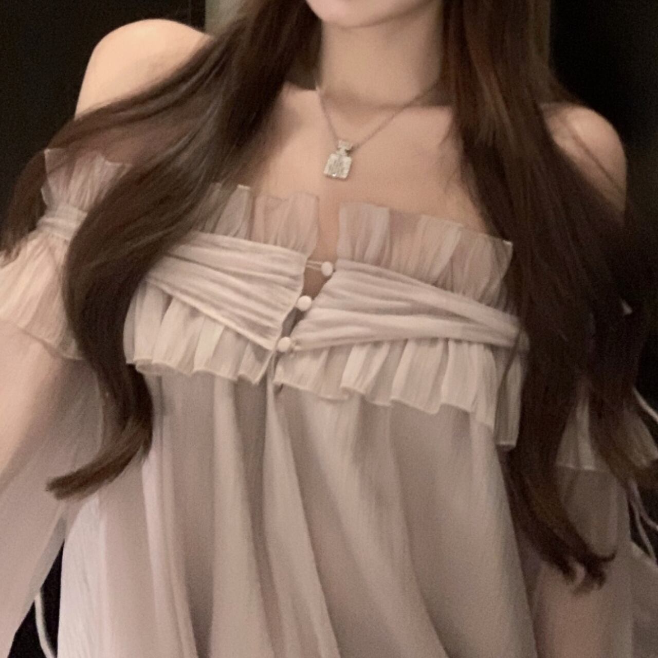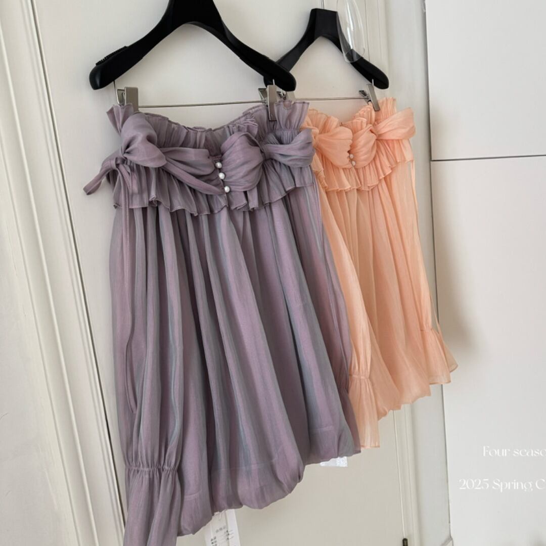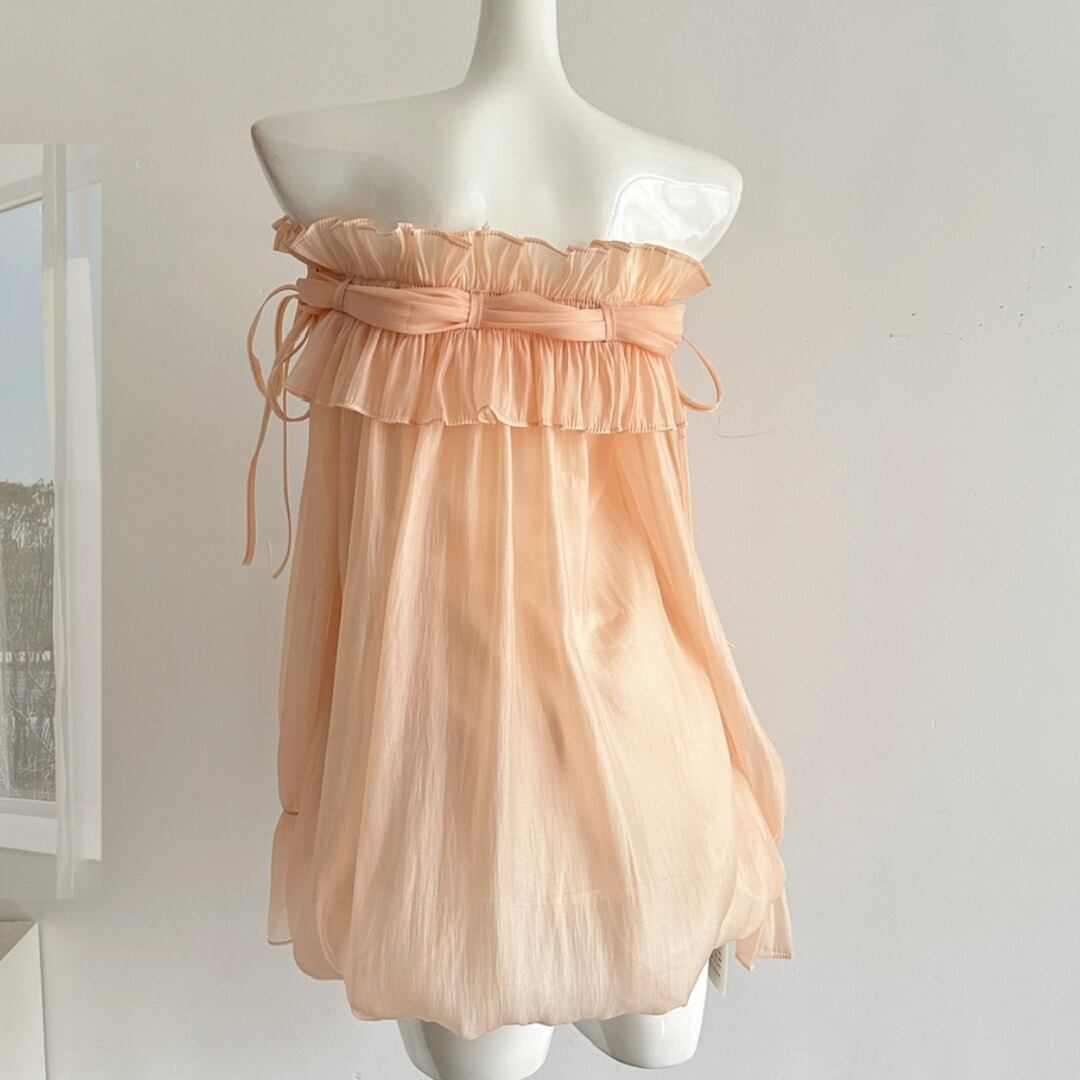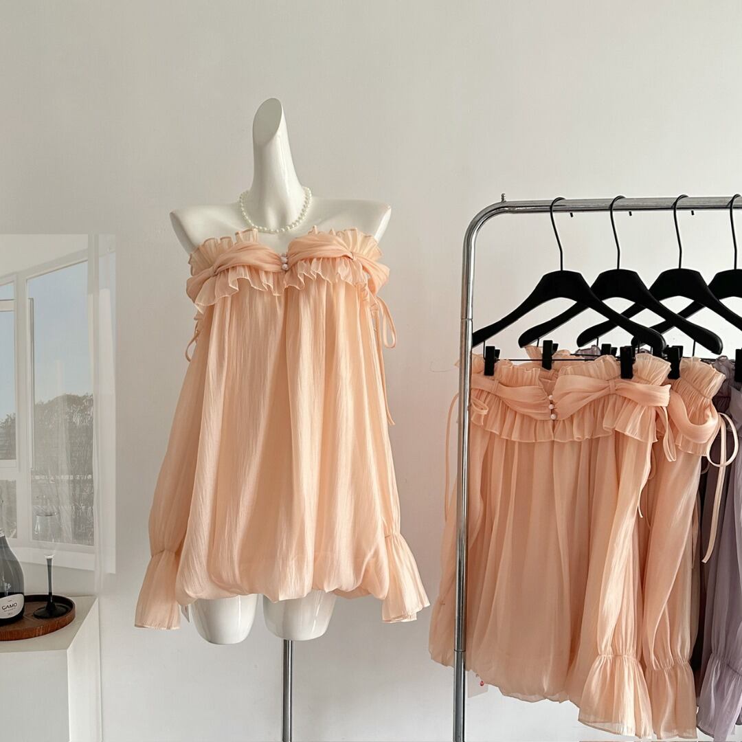 オフショルダーのデザインとバルーンスリーブが、女性らしいフェミニンな印象を演出するブラウス。繊細なフリルが胸元を華やかに飾り、さりげない上品さをプラスします。ロングスカートと合わせて優雅なスタイルに、デニムと合わせてカジュアルダウンした着こなしも楽しめます。様々なシーンで活躍する、着回し力の高いアイテムです。一枚持っていると便利な、ヘビロテ間違いなしの一枚です。