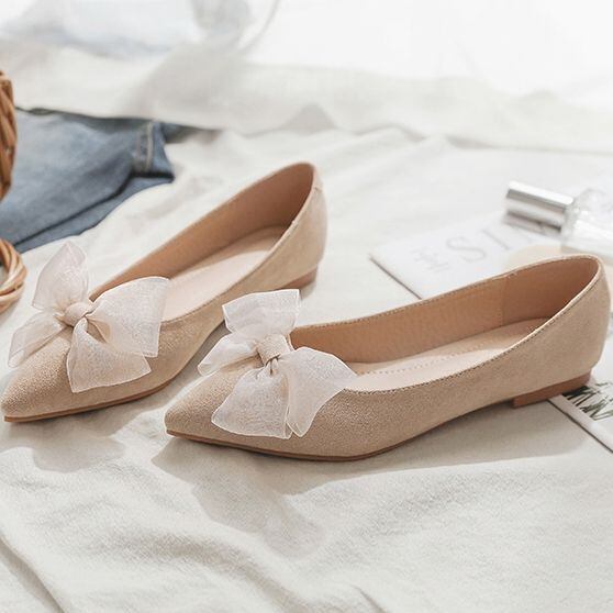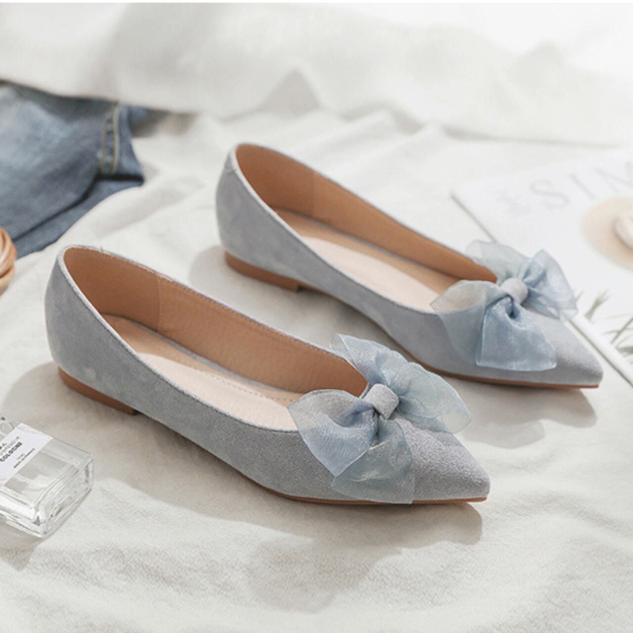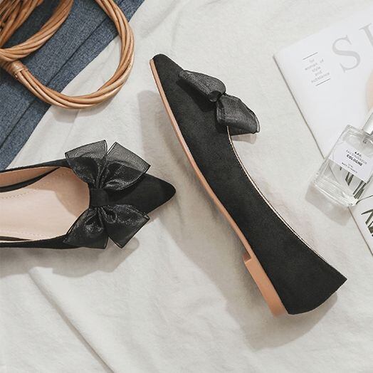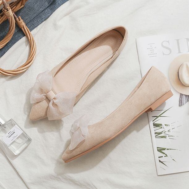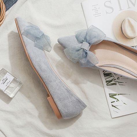 フラットシアーリボンポインテッドトゥパンプススウェード A0134