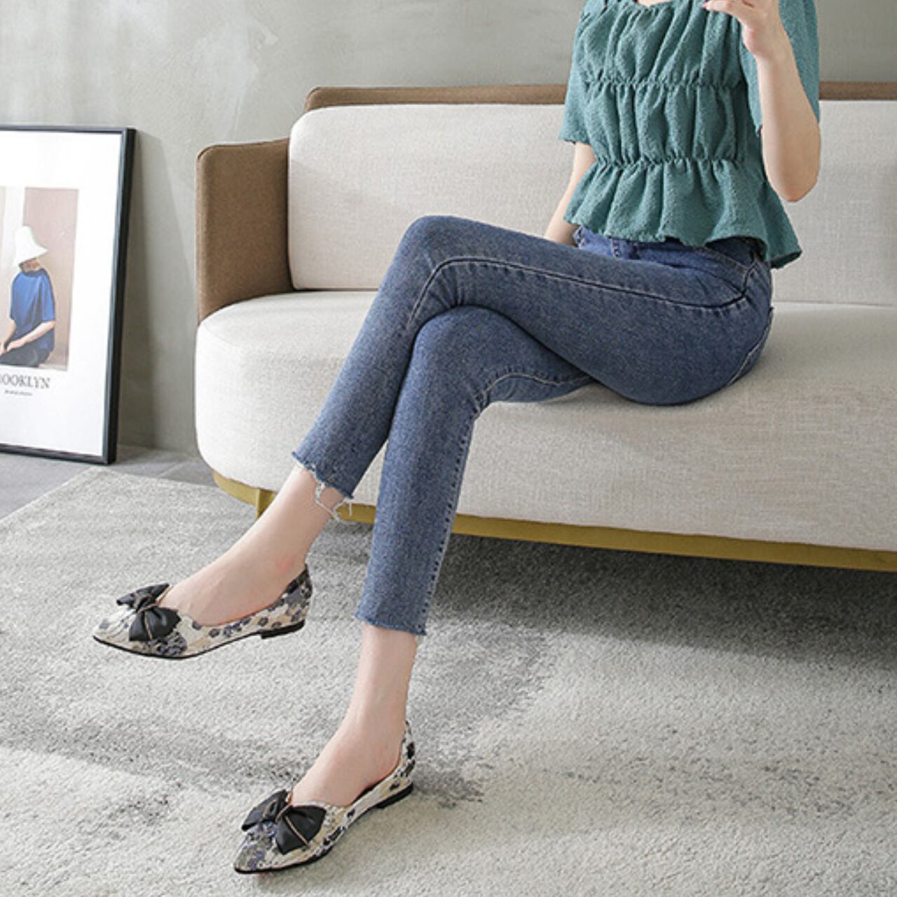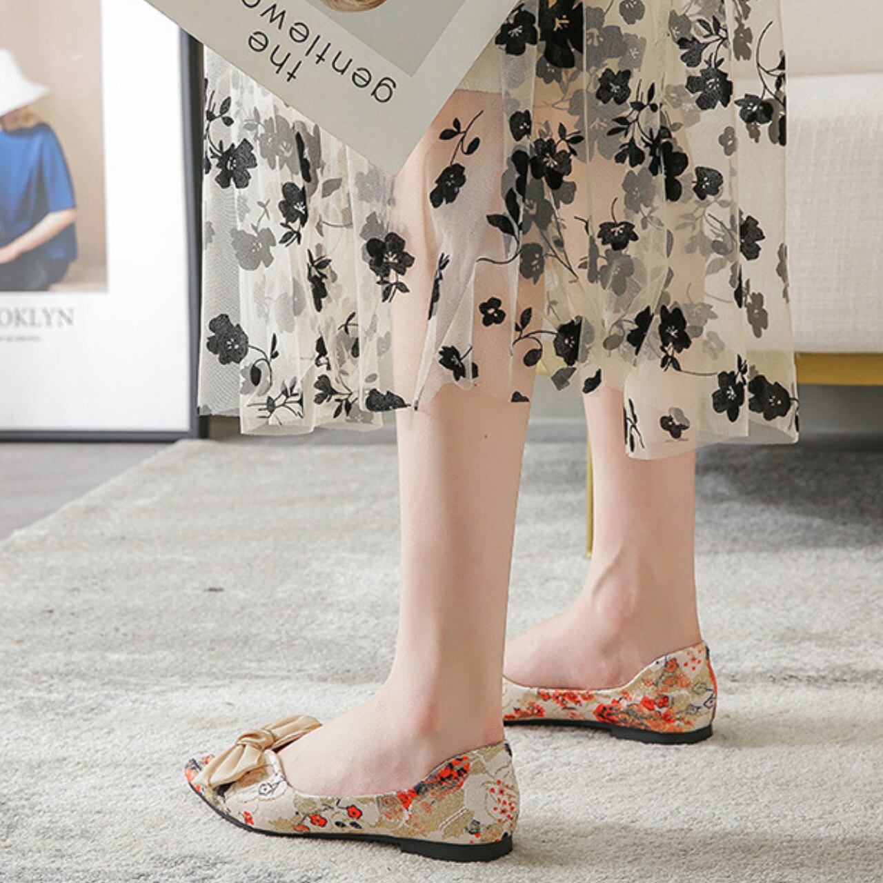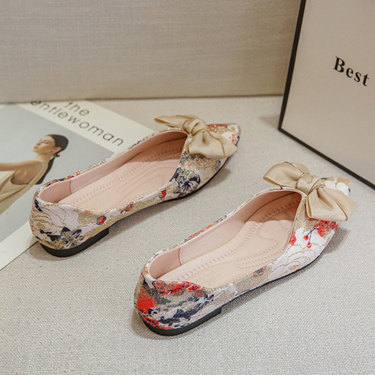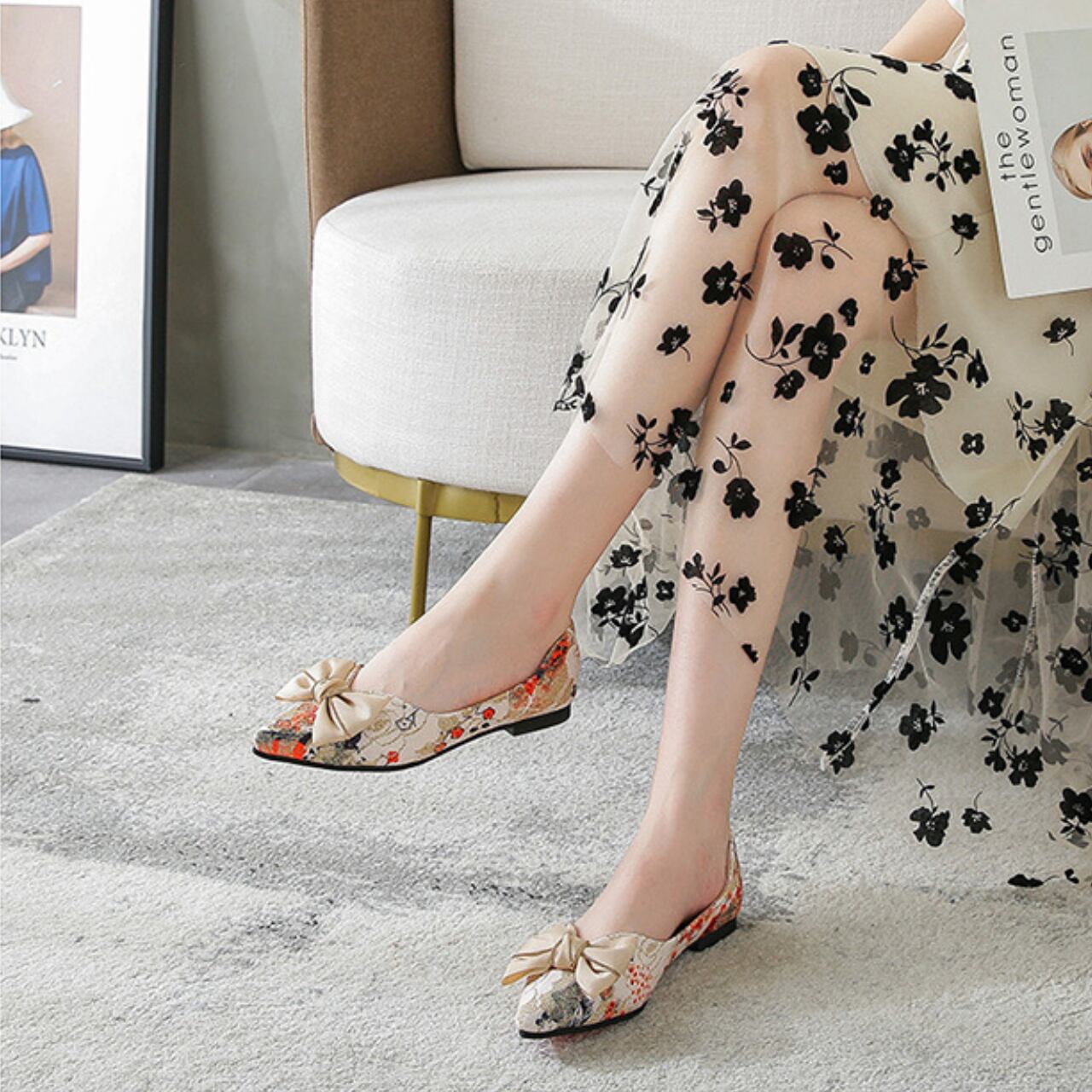 リボンフラワーポインテッドトゥパンプス A0130