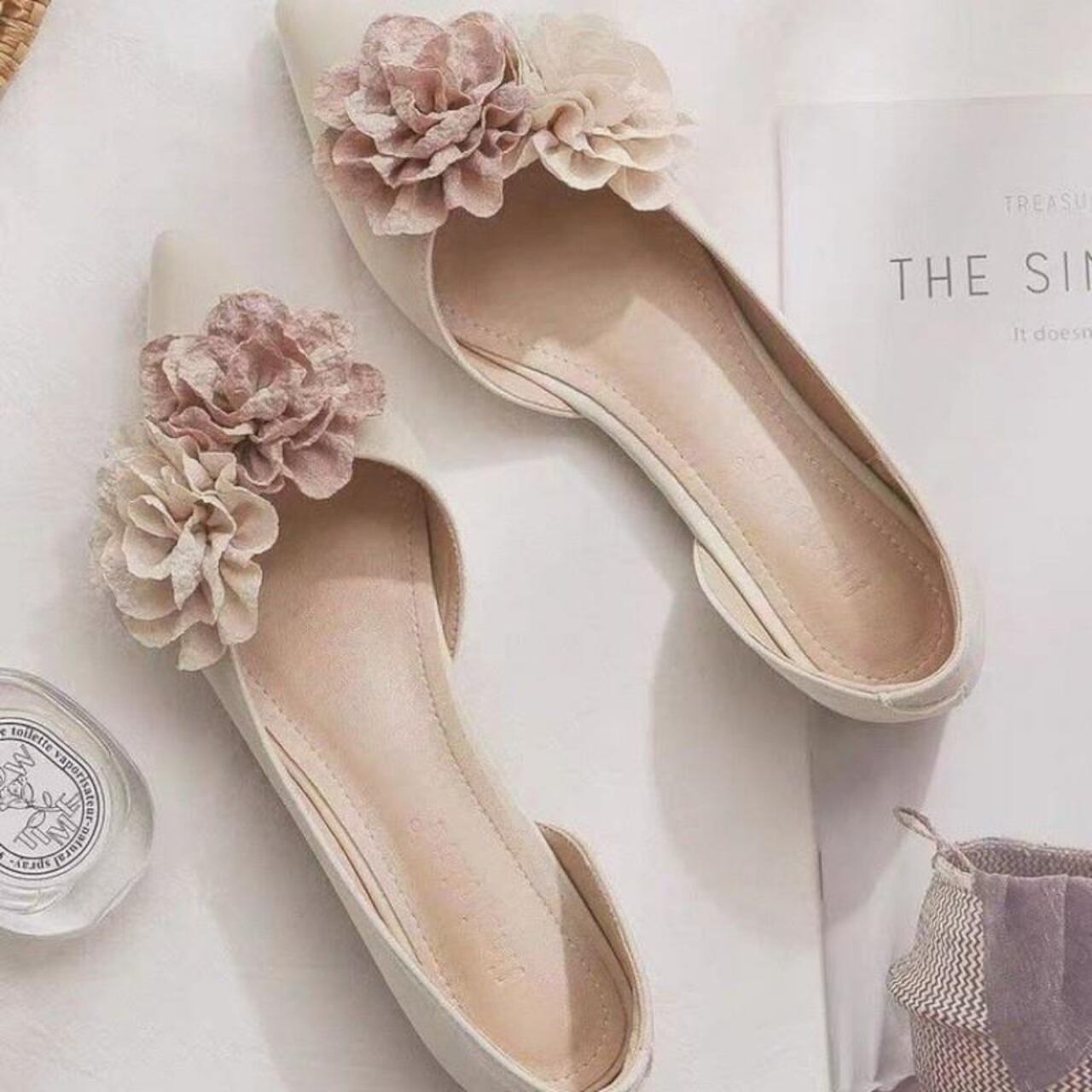 フラワーポインテッドトゥパンプス A0169