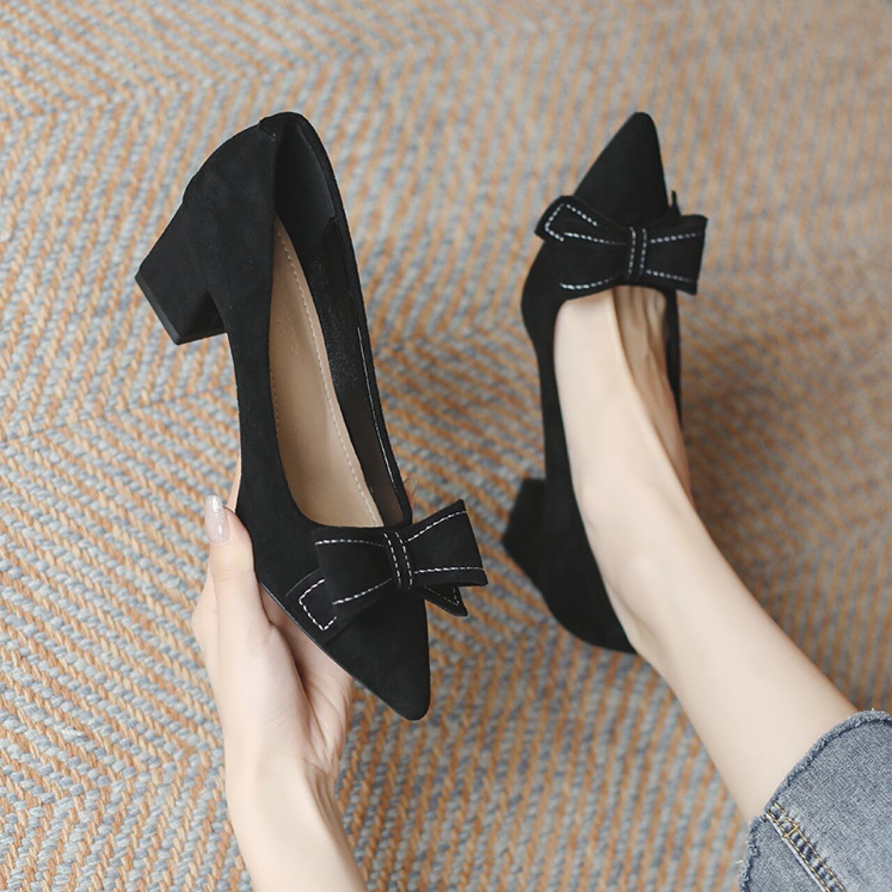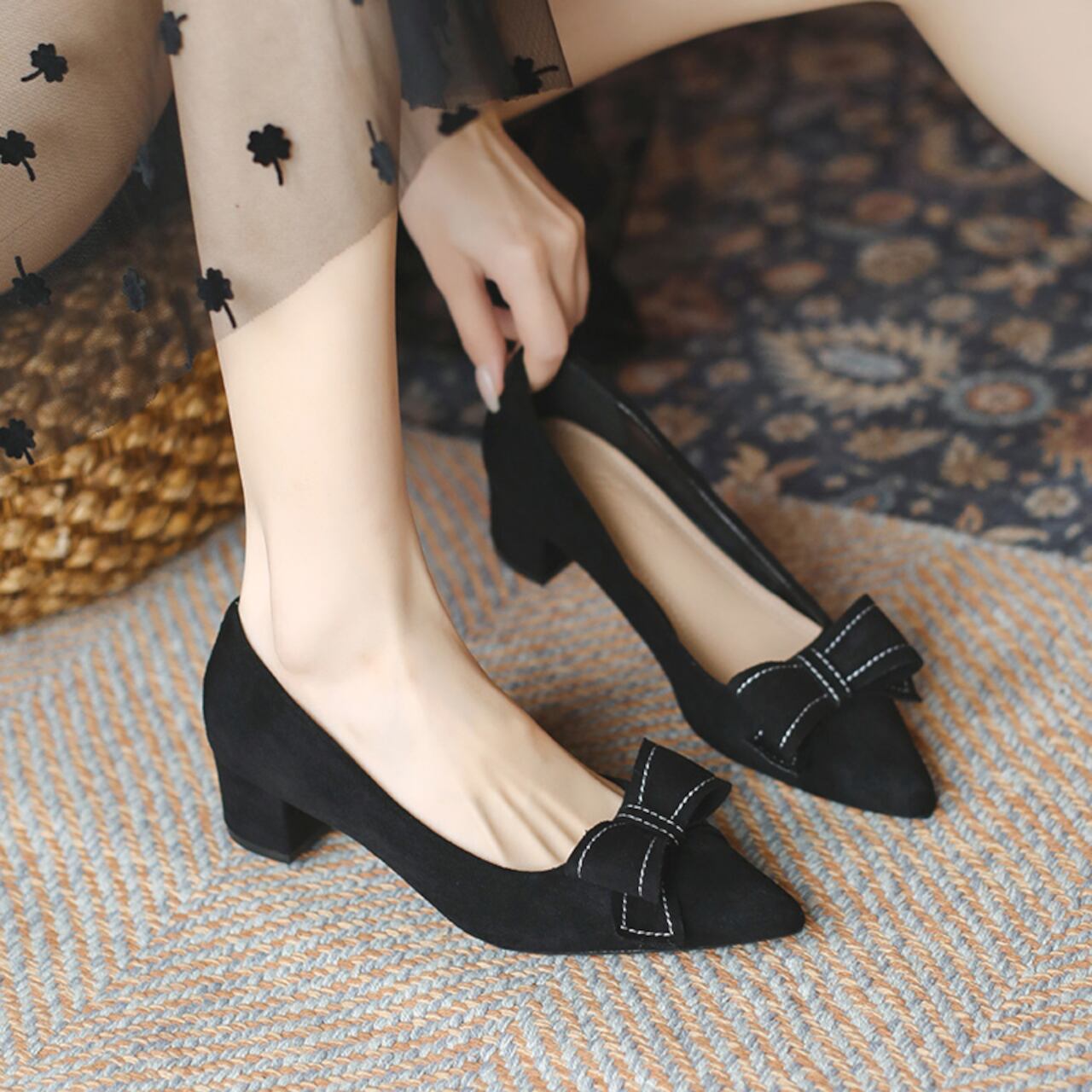 リボンポインテッドトゥパンプス A0170