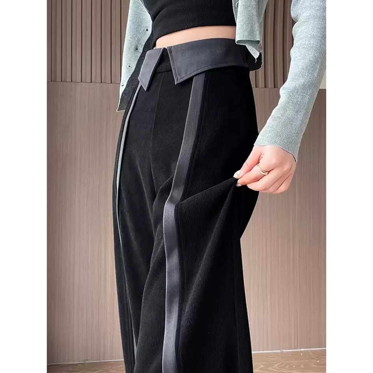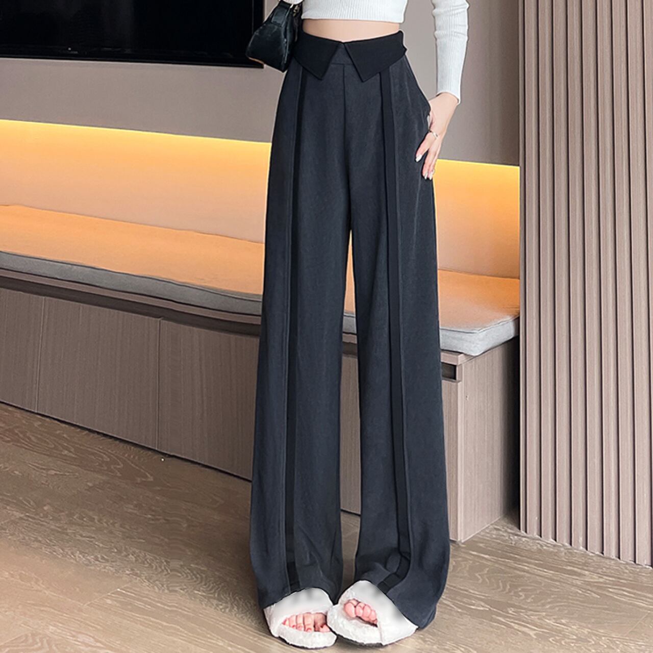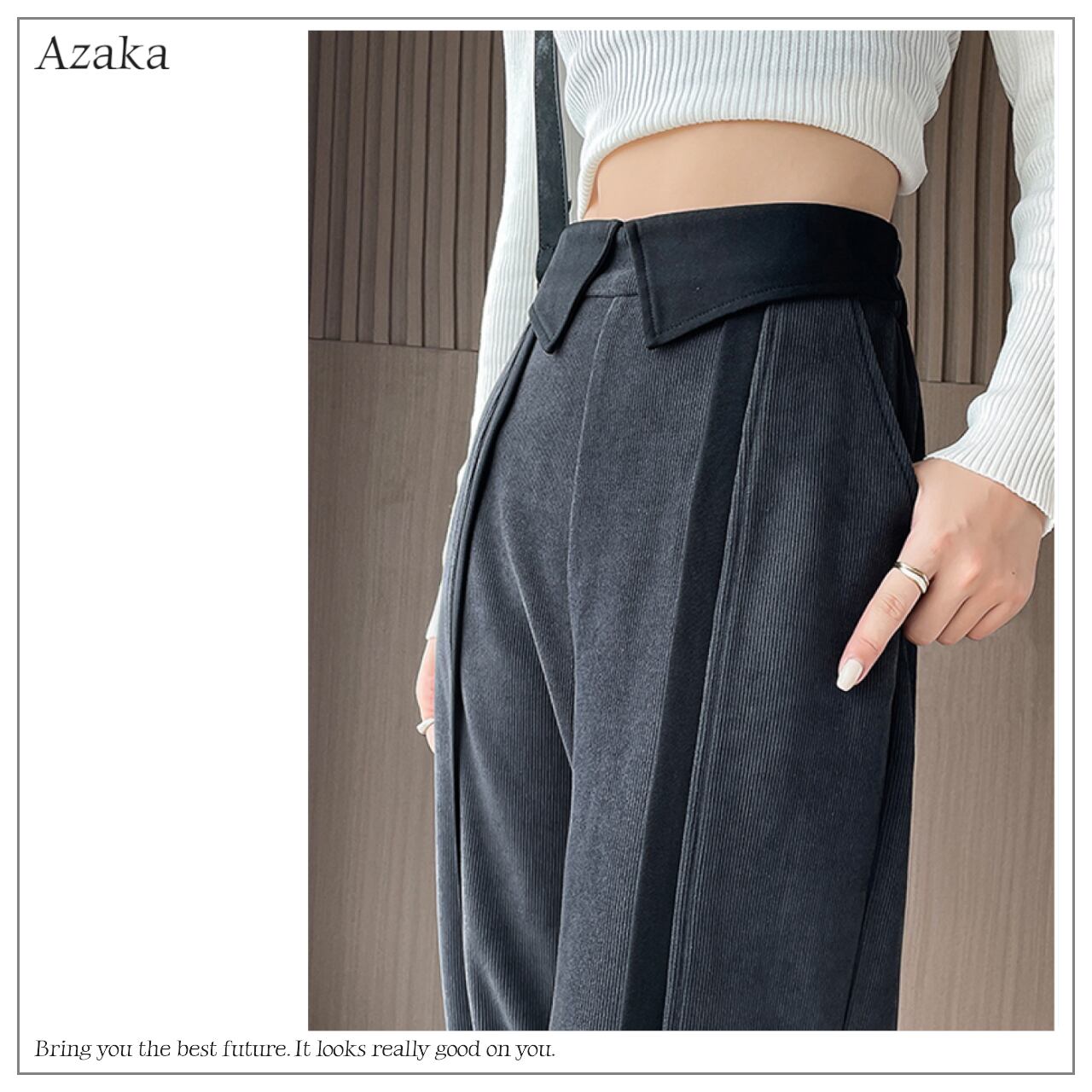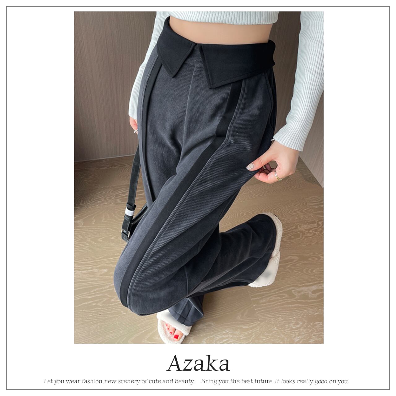 ハイウエストカラーウエストラインパンツ A0203