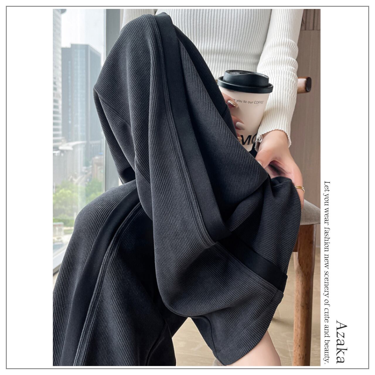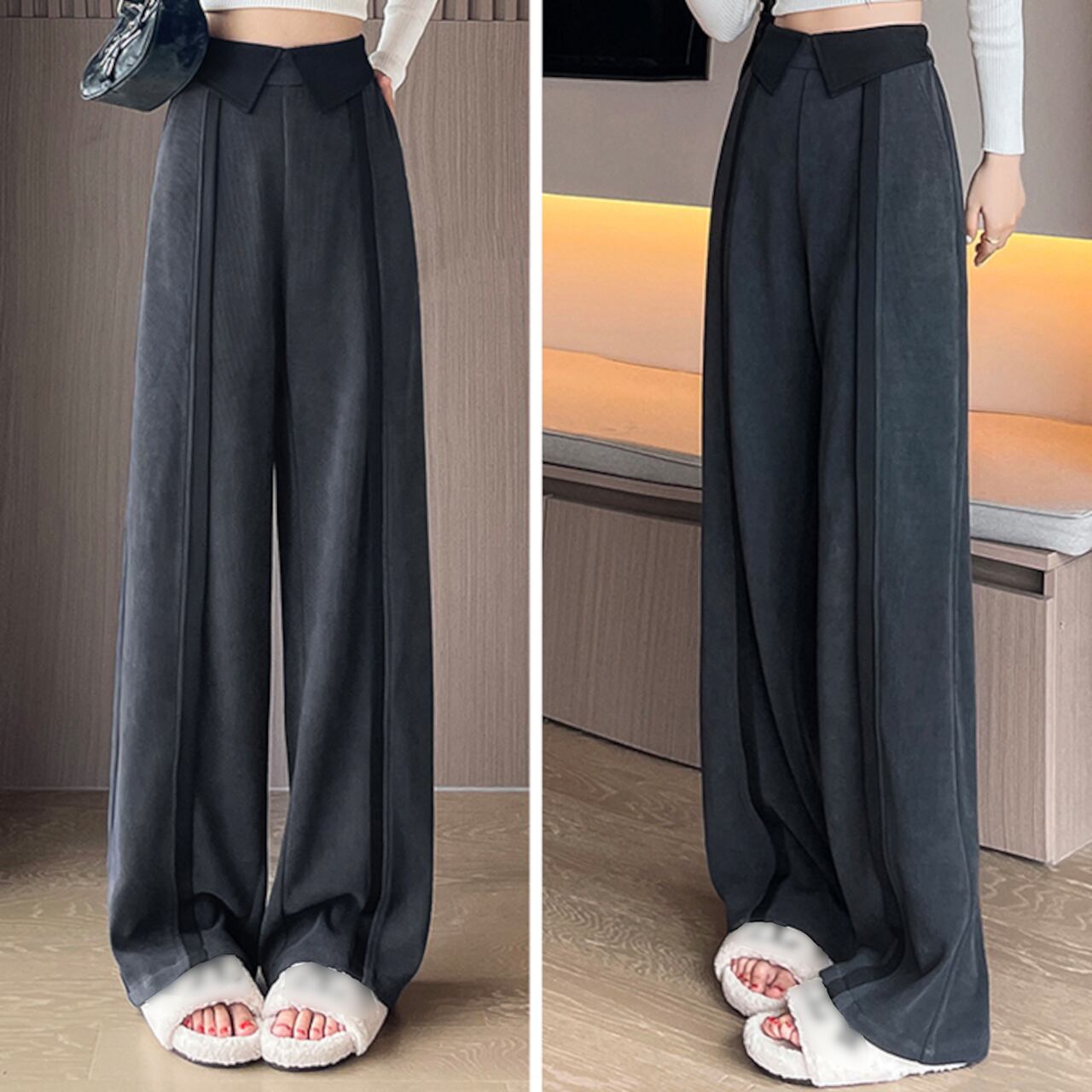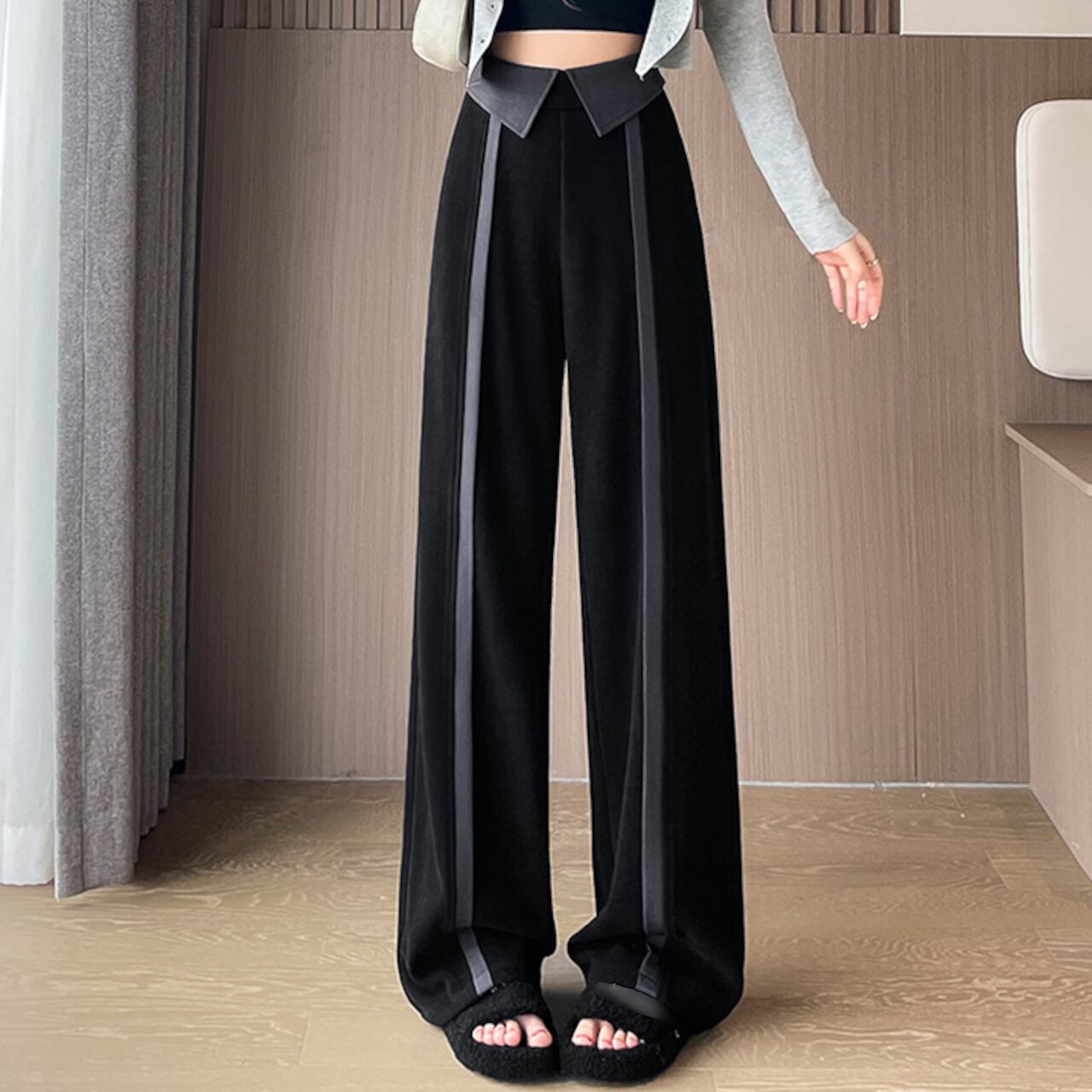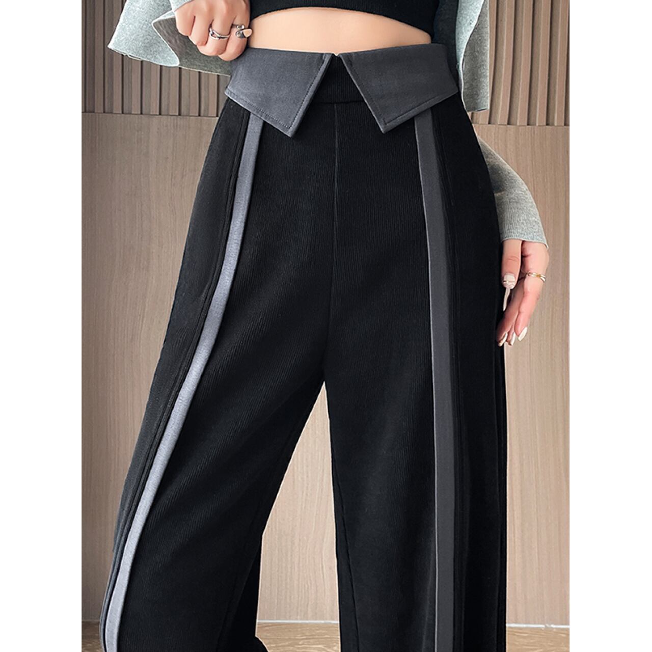 ハイウエストカラーウエストラインパンツ A0203