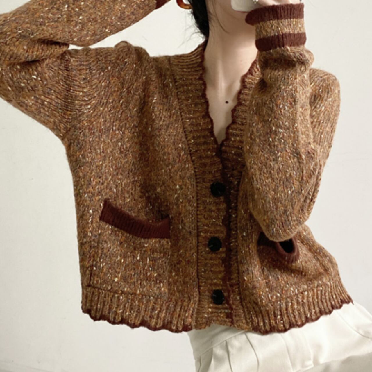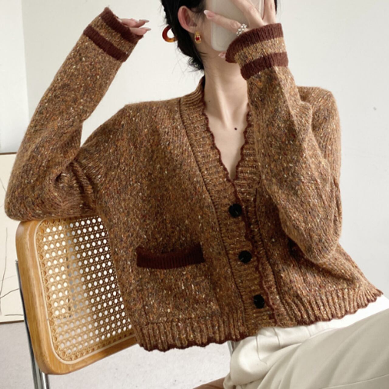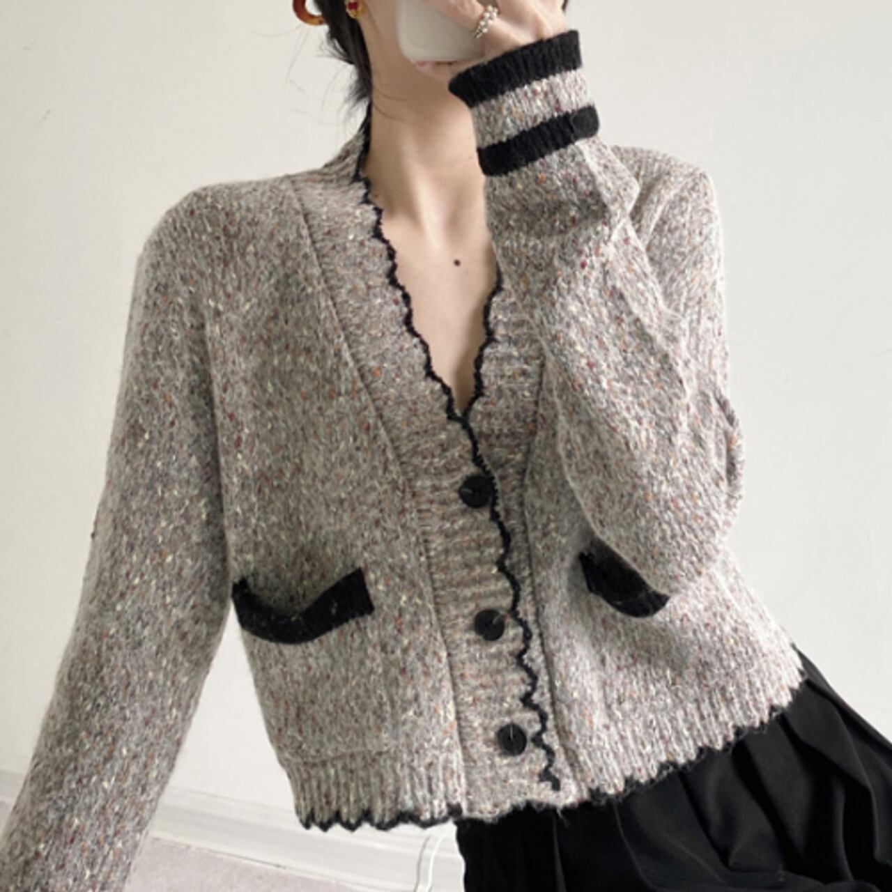 フリルVネックカーディガン A0244
