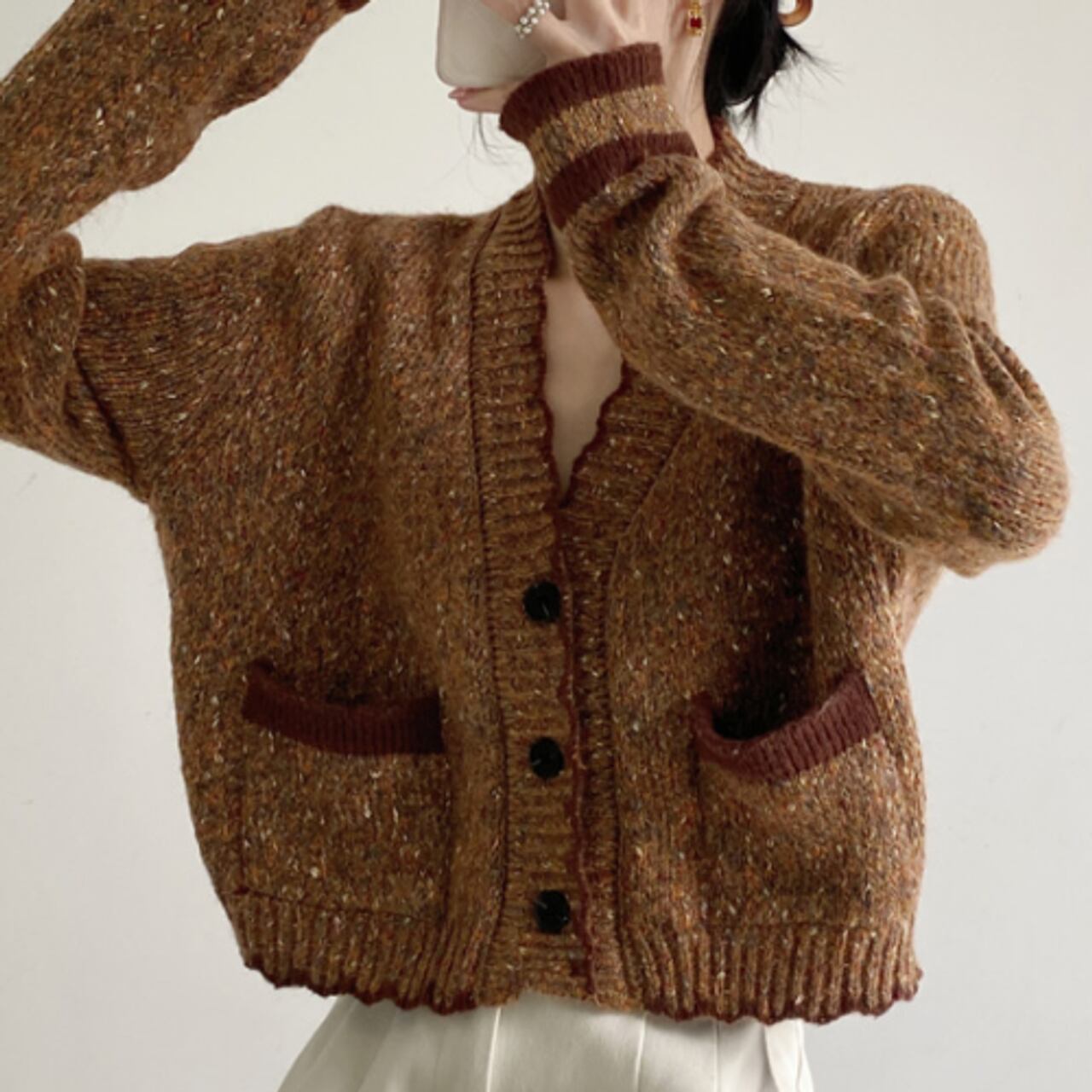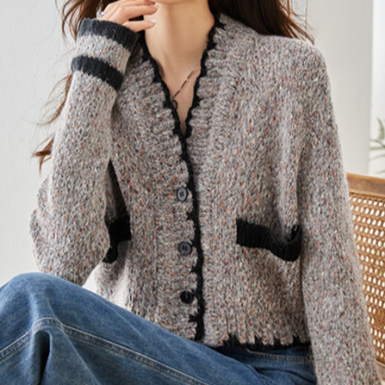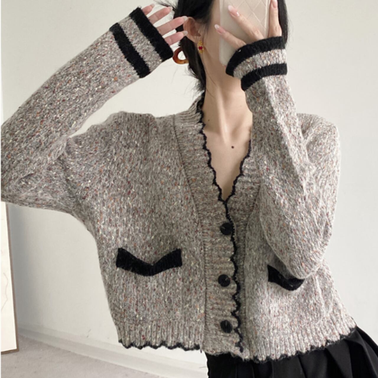 フリルVネックカーディガン A0244